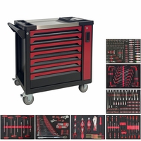 Carrito de Herramientas con 7 Cajones y Gabinete Lateral | Juego de Herramientas Automotrices Personalizable para Profesionales con 290 Piezas